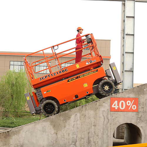 自(zì)行(xíng)走越野剪叉式高(gāo)空(kō<®ng)作(zuò)業(yè)平台(直流電(diàn)機(jī)驅動)